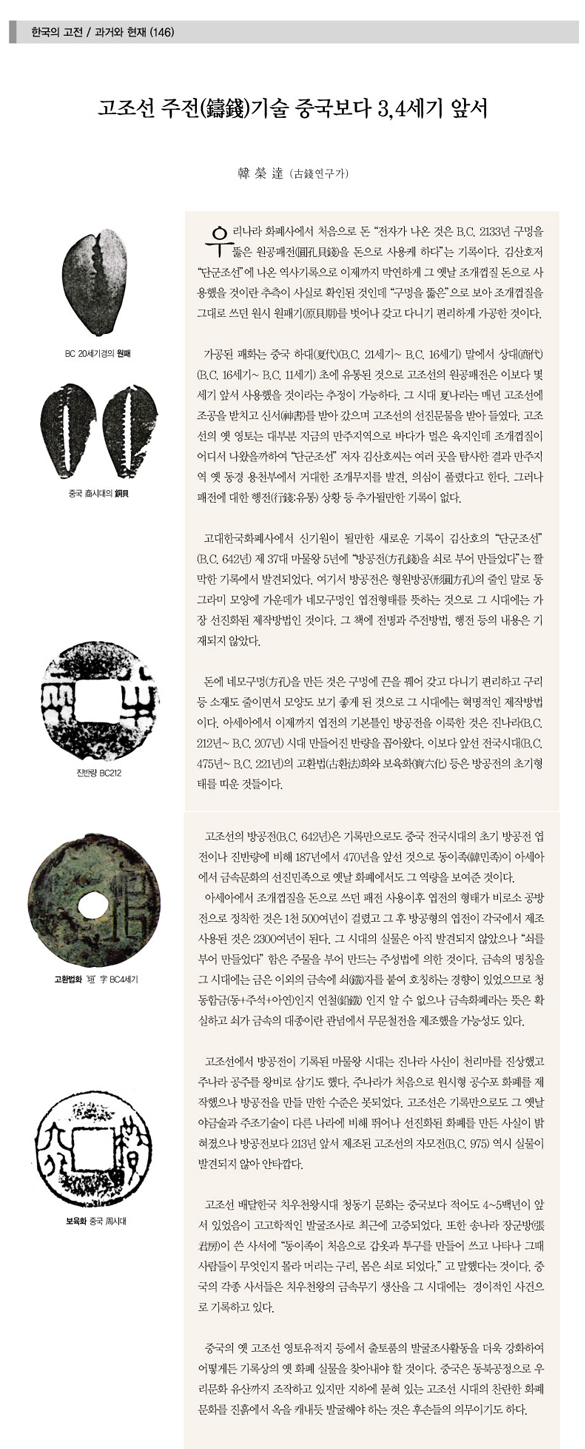 | 한국의 고전 (146) - 고조선 주전기술 중국보다 3,4세기 앞서 | |||||