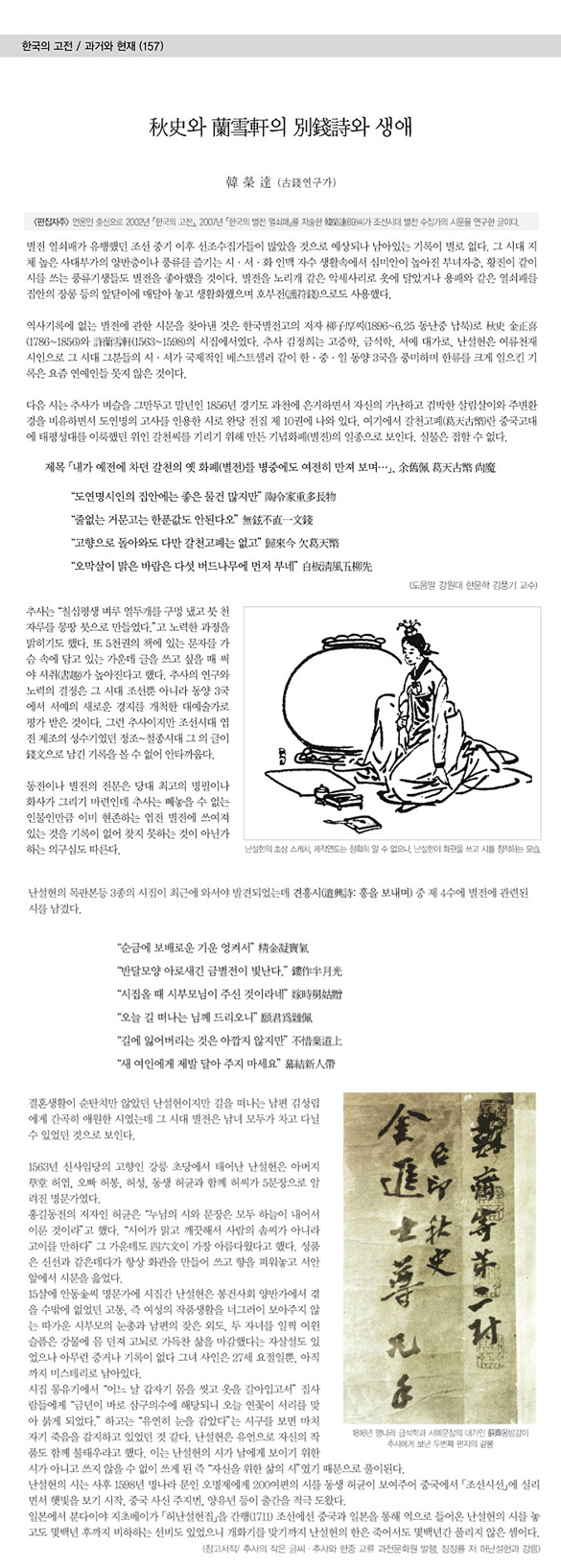 | 한국의 고전 (157) - 추사와 난설헌의 별전시와 생애 | |||||