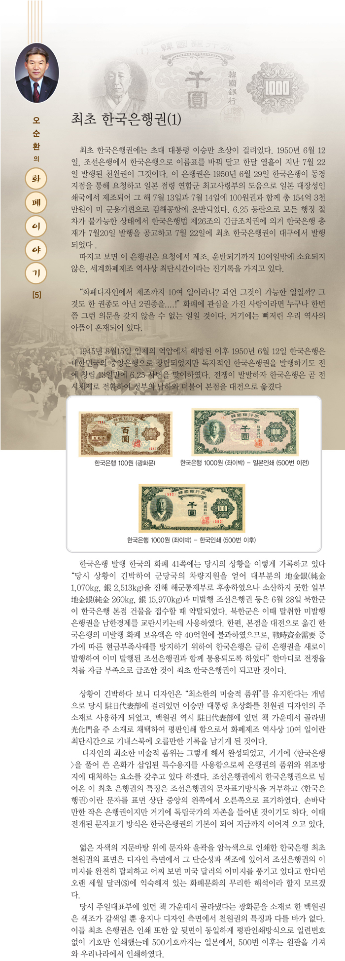 | 오순환의 화폐 이야기 (5) - 최초 한국은행권 (1) | |||||