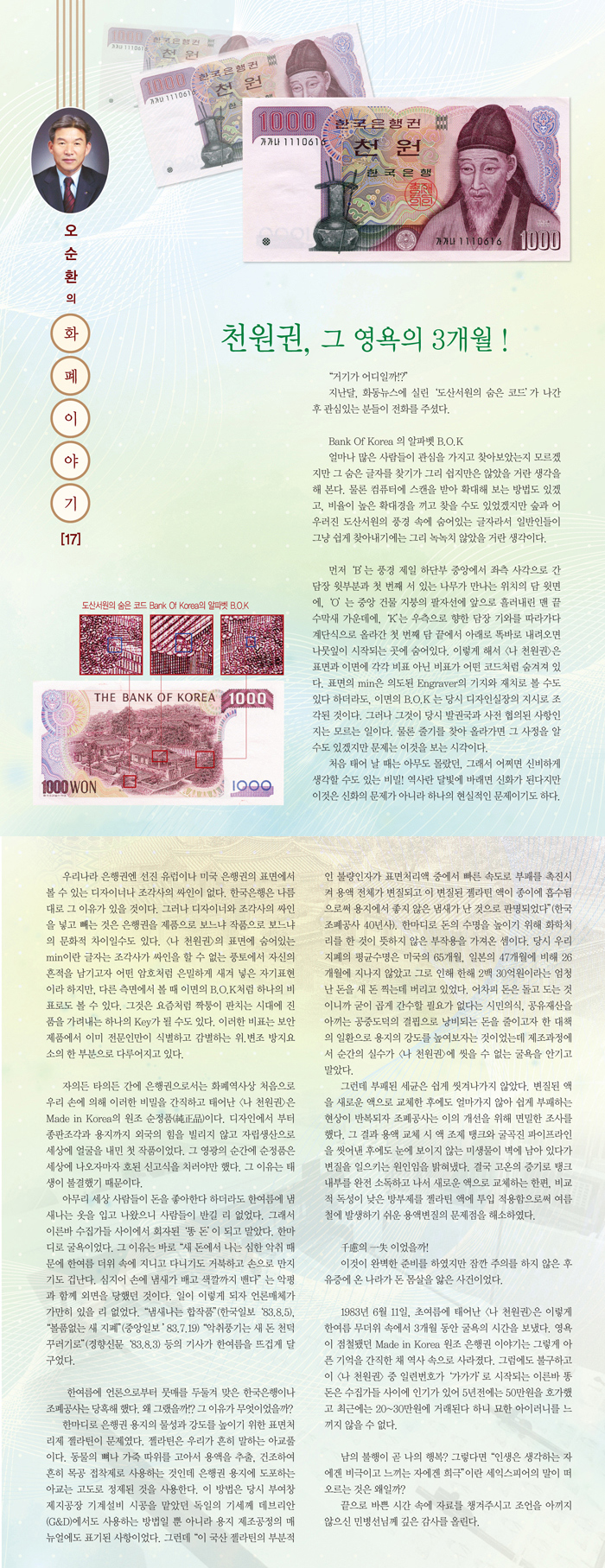 | 오순환의 화폐 이야기 (17) - 천원권, 그 영욕의 3개월! | |||||