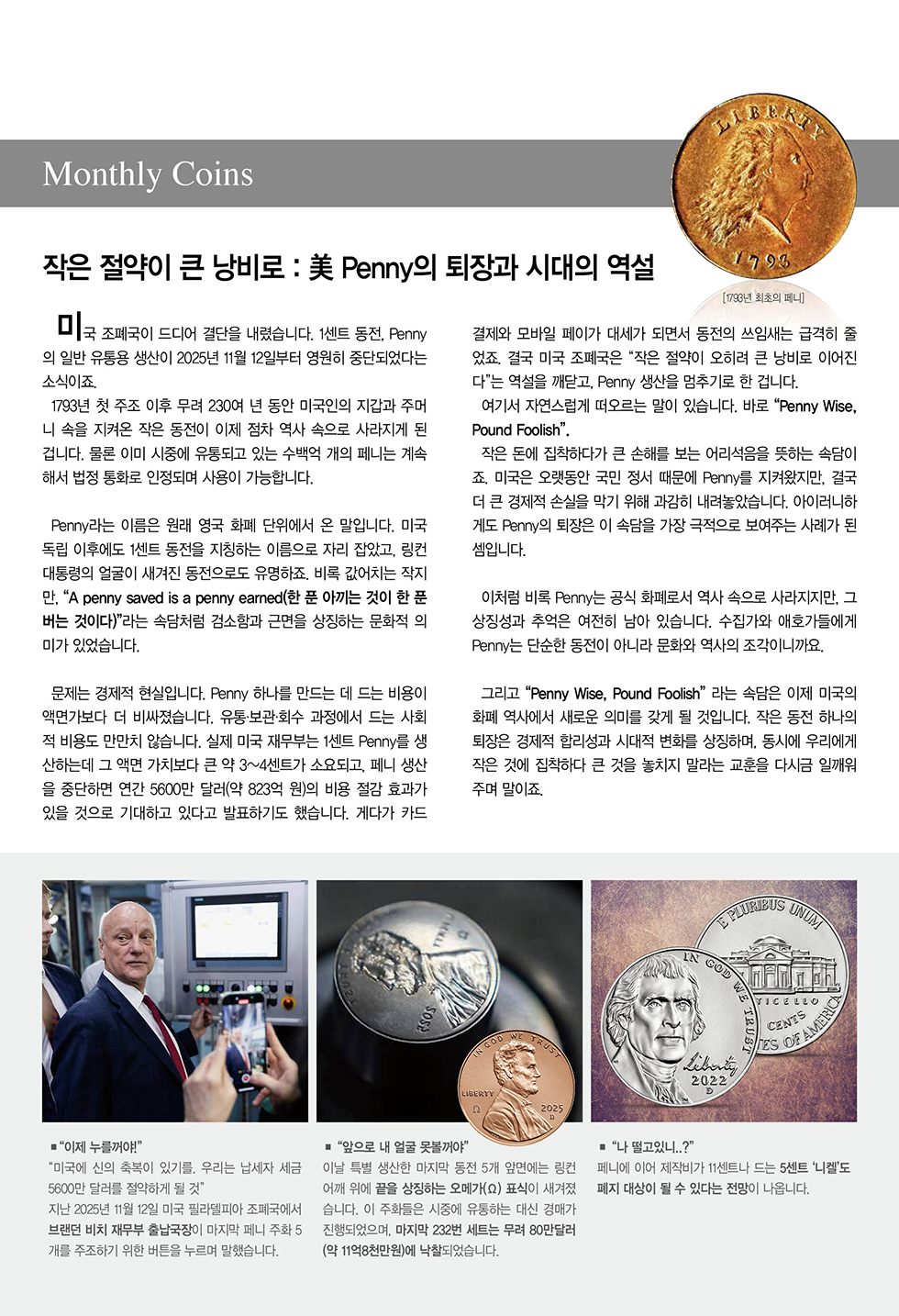 | [Monthly Coins] 작은 절약이 큰 낭비로 : 美 Penny의 퇴장과 시대의 역설 | |||||