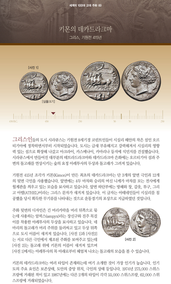 | 세계의 100대 고대 주화 (6) 키몬의 데카드라크마 | |||||