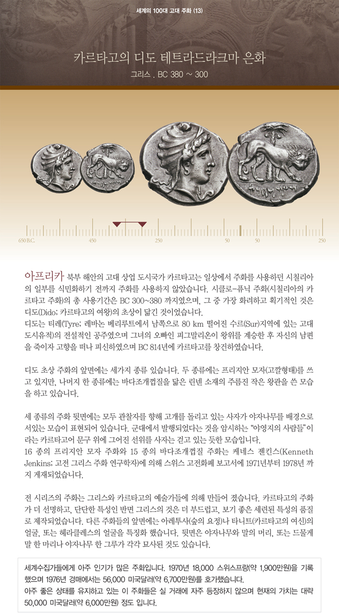 | 세계의 100대 고대 주화 (13) 카르타고의 디도 테트라드라크마 은화 | |||||