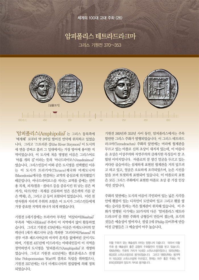 | 세계의 100대 고대 주화 (26) 암피폴리스 테트라드라크마 | |||||
