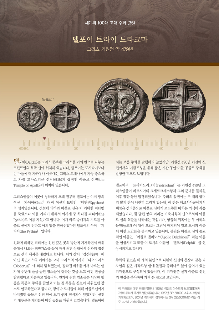 | 세계의 100대 고대 주화 (35) 델포이 트라이 드라크마 | |||||