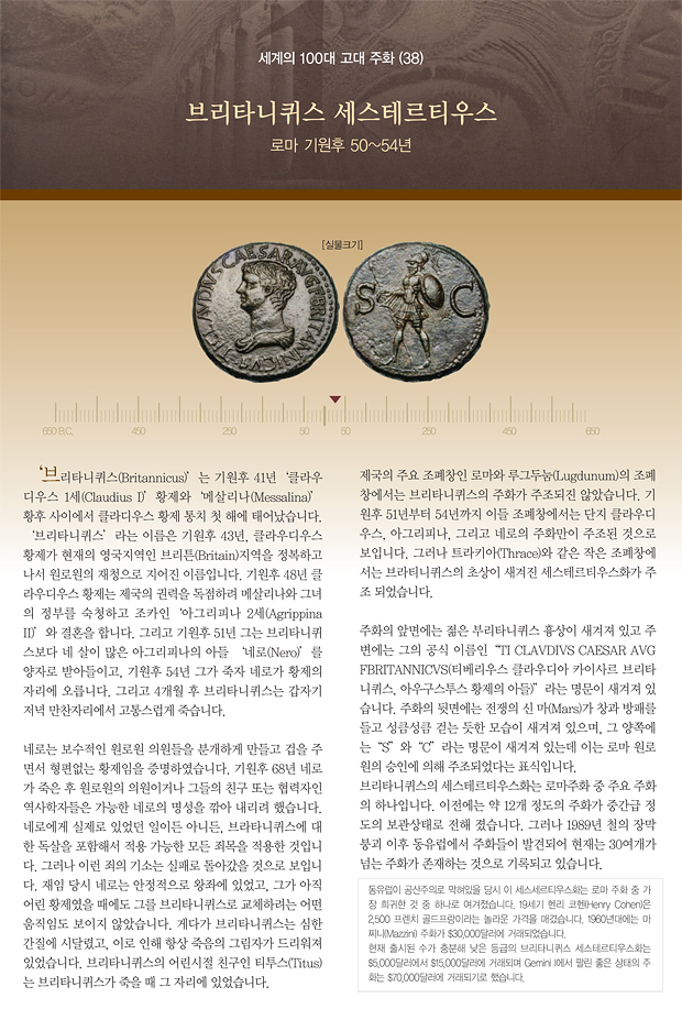| 세계의 100대 고대 주화 (38) 브리타니퀴스 세스테르티우스 | |||||