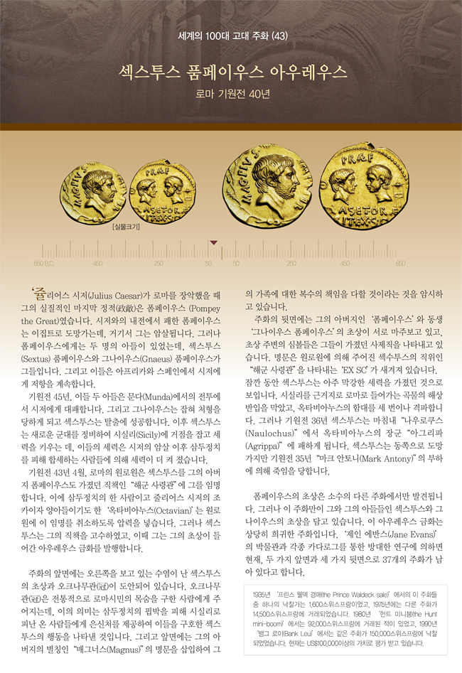 | 세계의 100대 고대 주화 (43) 섹스투스 품페이우스 아우레우스 | |||||