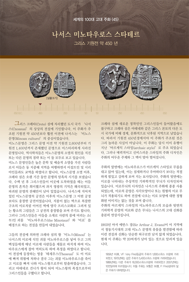 | 세계의 100대 고대 주화 (45) 나서스 미노타우로스 스타테르 | |||||