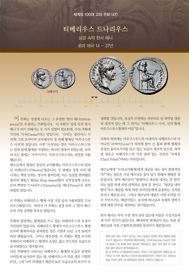 | 세계의 100대 고대 주화 (47) 티베리우스 드나리우스 | |||||