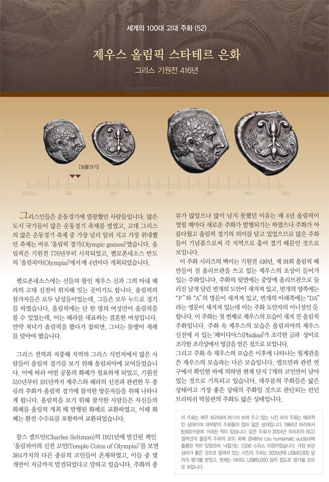 | 세계의 100대 고대 주화 (52) 제우스 올림픽 스타테르 은화 | |||||