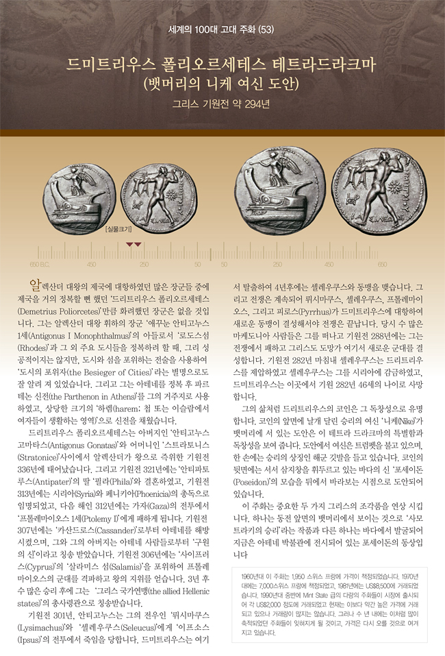 | 세계의 100대 고대 주화 (53) 드미트리우스 폴리오르세테스 테트라드라크마 | |||||