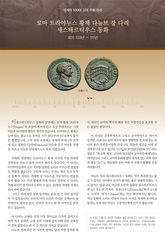 | 세계의 100대 고대 주화 (54) 다뉴브강 다리 세스테르티우스 동화 | |||||