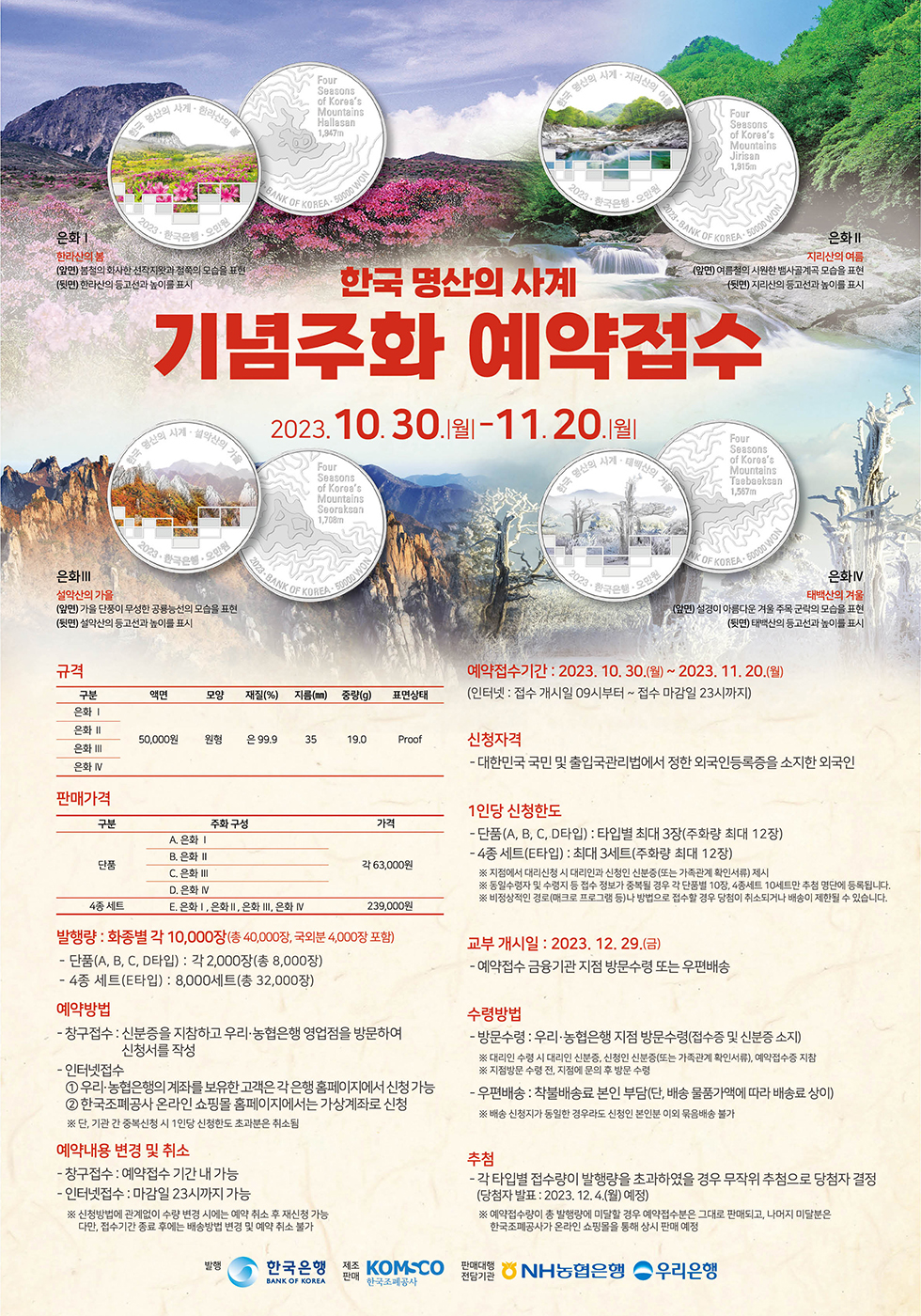 | 한국 명산의 사계 기념주화 예약접수 | |||||