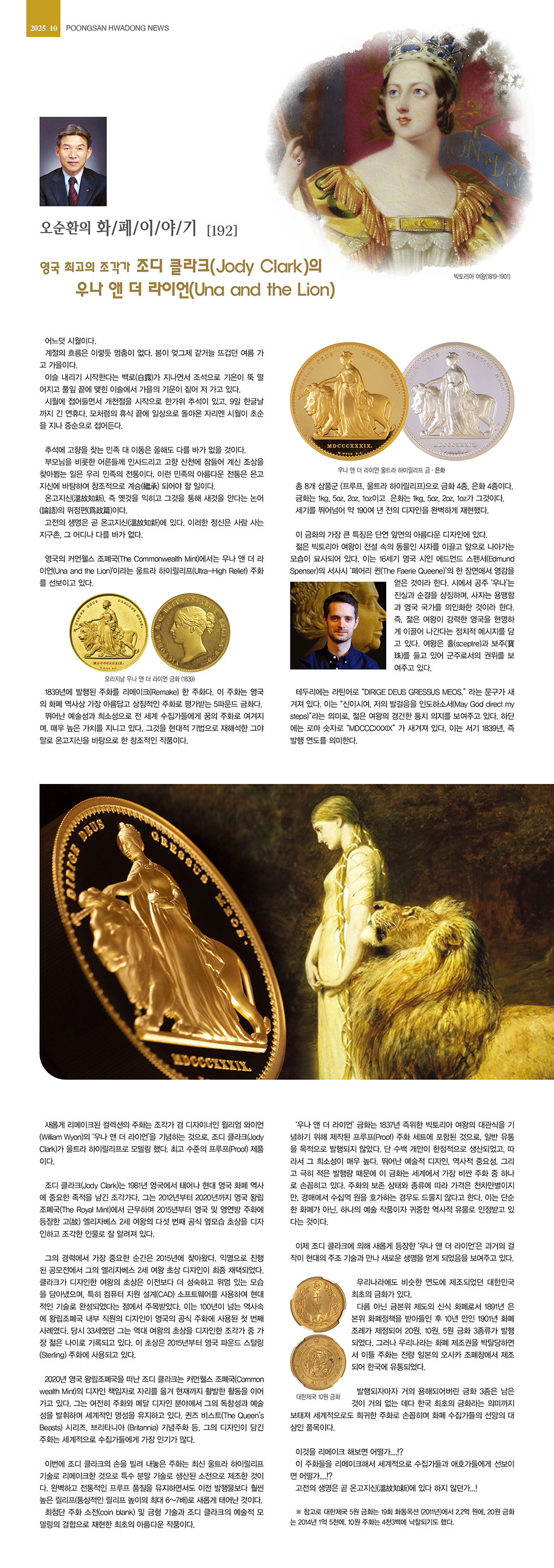 오순환의 화폐 이야기 (192) - 영국 최고의 조각가 조디 클라크의 우나 앤 더 라이언(Una and hte Lion) | |||||